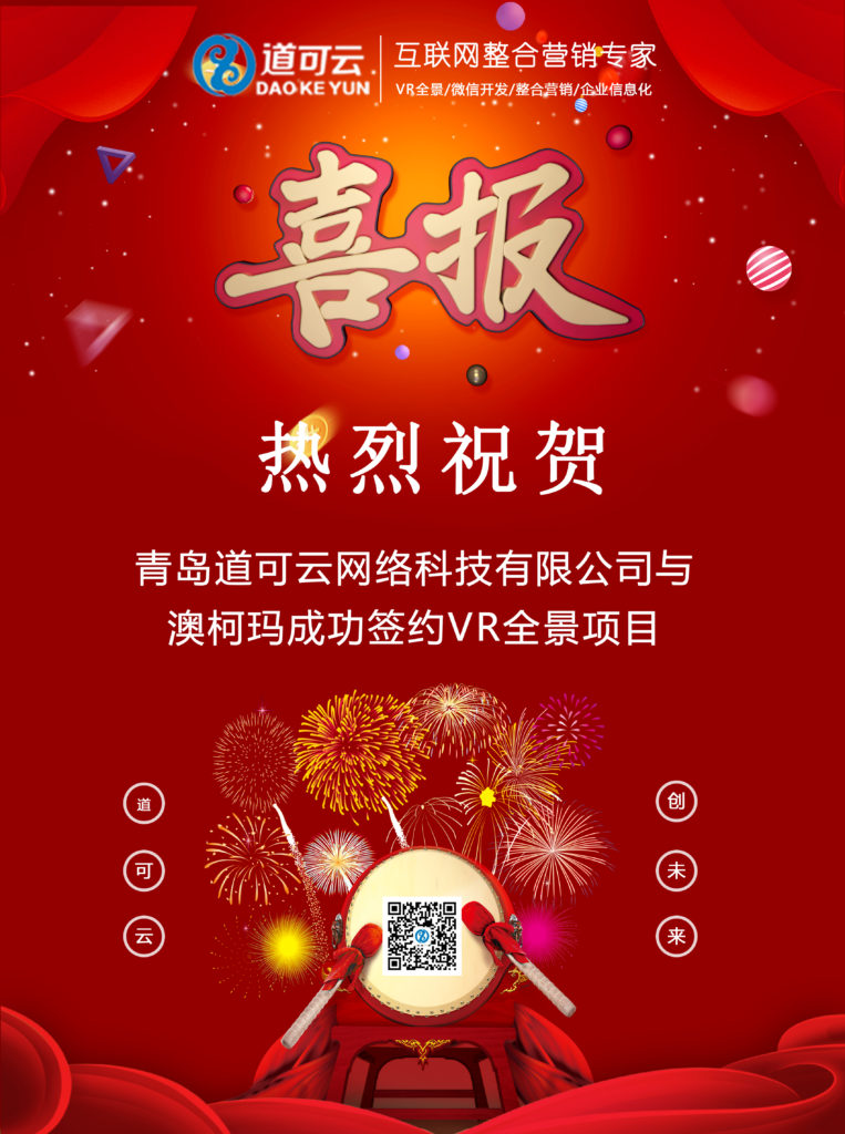 2019年6月,青岛道可云网络科技有限公司与澳柯玛成功签约,确定青岛道可云网络科技有限公司为青岛澳柯玛智慧冷链有限公司提供VR全景服务!