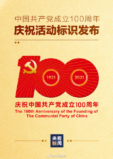 3月24日,中宣部发布中国共产党成立100周年庆祝活动标识,明确指出中国共产党成立100周年庆祝活动标识是庆祝中国共产党成立100周年活动的唯一指定标识。可广泛用于各地区各部门庆祝中国共产党成立100周年活动环境布置和群众性主题宣传教育活动用品制作。