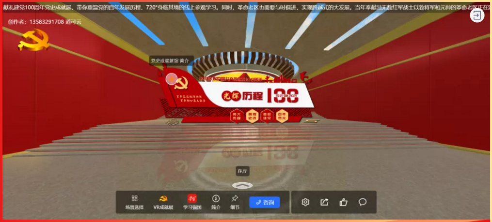 在相关各级部门的领导下,道可云作为国家工信部推荐的数字化赋能VR平台,积极响应中共中央关于全民学党史的号召,以中宣部、中共中央党史和文献研究院等权威机构提供的党史内容为核心,采用领先的VR/AR、全息投影、大数据等技术规划建设VR虚拟党建展馆、线下党建主题展览展馆,线上党史学习互动平台、AR党史学习明信片、党建文创产品等一站式智慧党建解决方案,帮助各企事业单位做好庆祝中国共产党建党100周年宣传教育活动。
