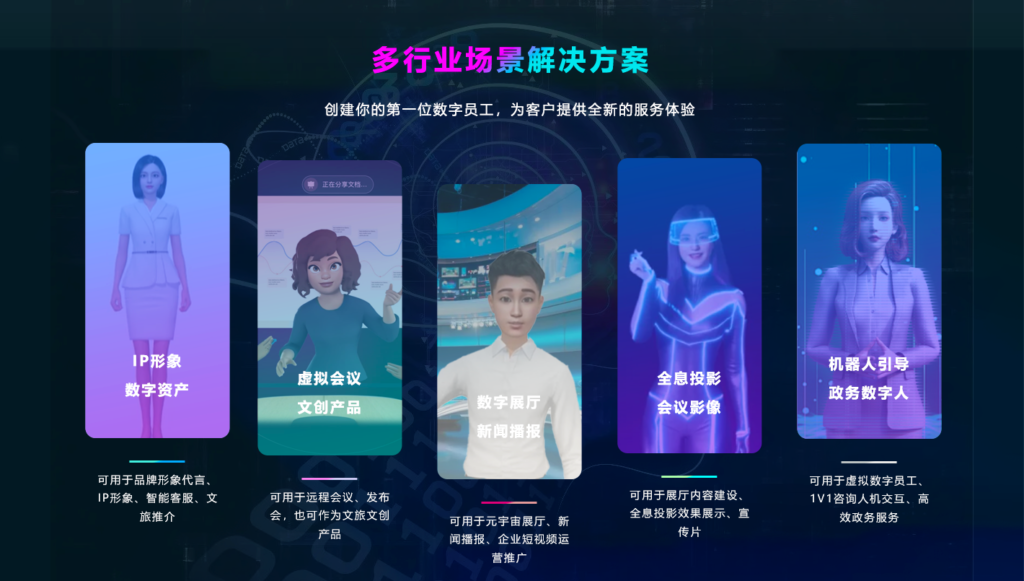通过虚拟数字人可快速生成各国语言版本的企业介绍、产品介绍等内容,实现与海外客户的高效沟通,降低员工成本,推动企业创造差异化商业价值。