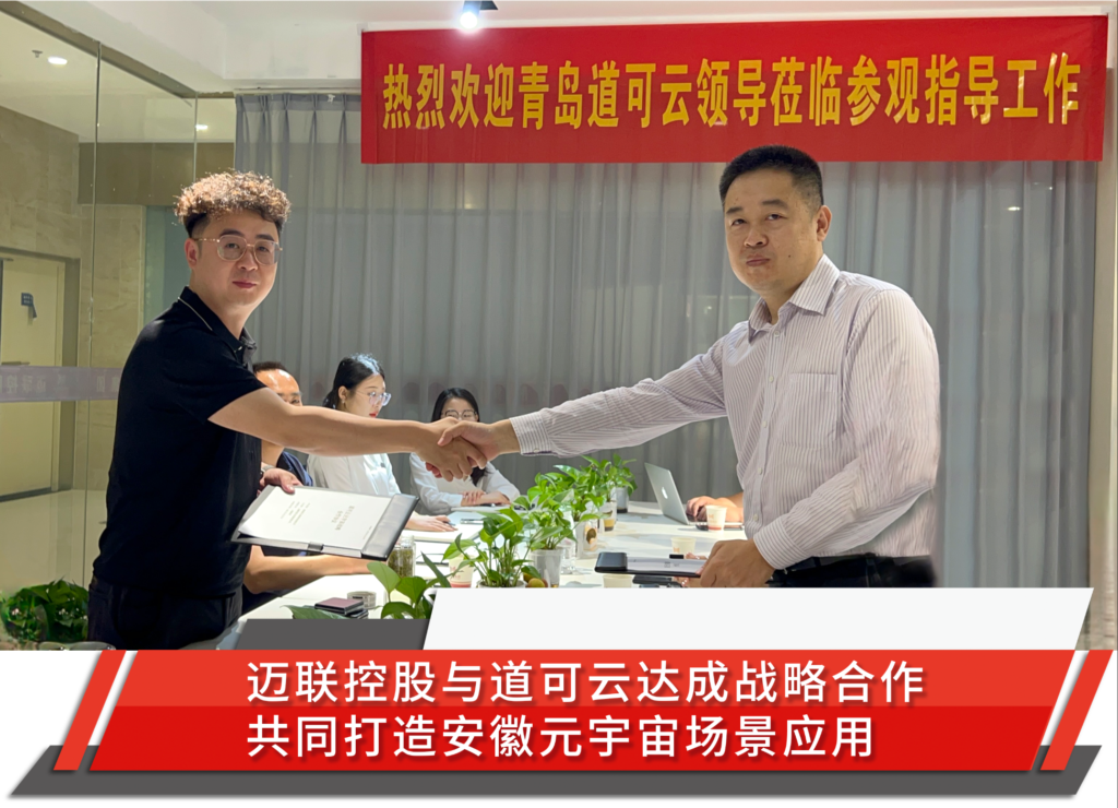 6月29日,道可云与迈联控股集团战略合作签约仪式在迈联控股集团总部举行,青岛道可云网络科技有限公司总经理孙即林、安徽迈联控股集团董事长胡泽坤等相关领导出席签约仪式。