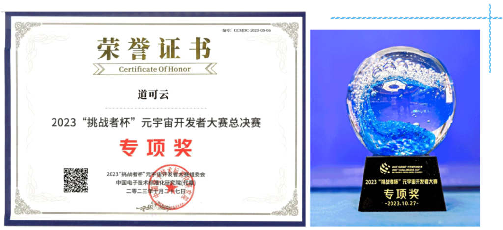 道可云i元名片荣获2023“挑战者杯”元宇宙开发者大赛专项奖