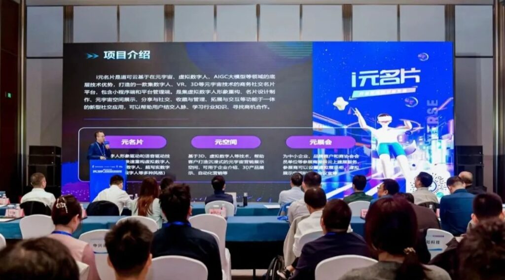 荣获本次大赛专项奖的元宇宙产品——i元名片,是道可云基于在元宇宙、虚拟数字人、AIGC大模型等领域的底层技术优势,打造的一款集虚拟数字人形象重构、名片设计制作、元宇宙空间展示、分享与社交、收藏与管理、拓展与交互等功能于一体的元宇宙新型社交应用,并在此基础上逐步推出元空间、元展会、元城市等深度应用。