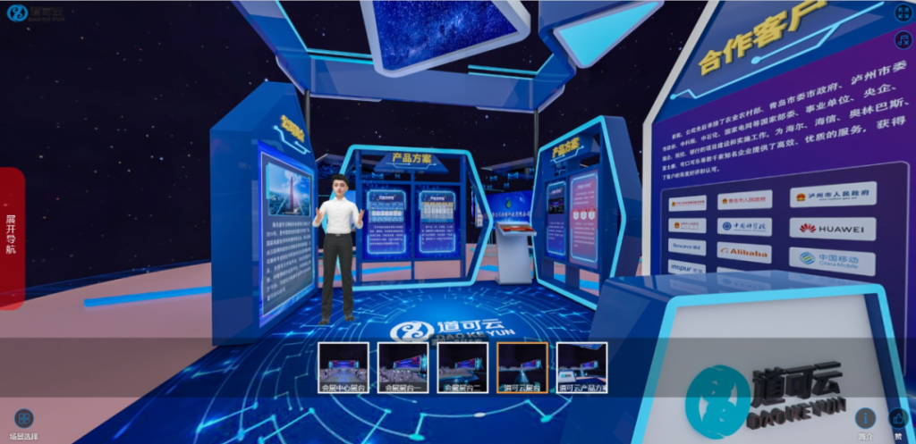 为赋能会展行业数字化转型和创新发展,打造沉浸式展会新模式。作为中国领先的创新元宇宙厂商,道可云基于自身在元宇宙、VR、AR、虚拟数字人等领域的技术优势,不断进行技术和产品创新,对会展元宇宙平台进行了全新升级!可为会展、商协会、艺术展览等行业提供云上建展服务,快速进行线上参会参展、结交人脉、学习行业知识、寻找商机合作,提高展会效果。