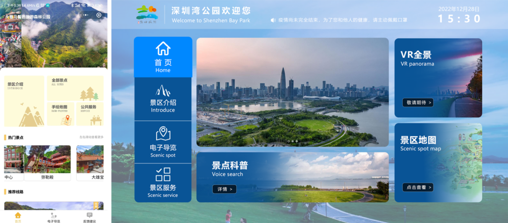 景区/园区导览系统是必不可少的服务内容,可提供提供指引导航,讲解景点、VR游览、预约购票等服务。随着元宇宙、VR、AR等数字科技的不断发展,导览系统的形式也从传统的纸质地图、指示牌等形式,发展为如今的VR/AR智慧导览。