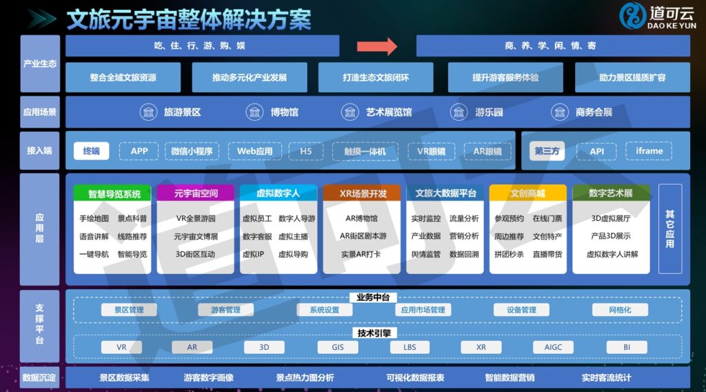 作为中国领先的文旅元宇宙服务商,道可云持续深耕文旅领域,打造了领先的文旅元宇宙平台,并在全国多地的旅游景区、博物馆等得到了广泛应用。