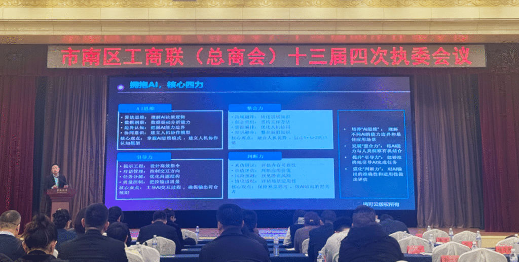 3月4日,市南区工商联(总商会)十三届四次执委会议成功召开。大会邀请道可云总经理孙即林围绕前沿技术 “Deepseek” 进行专题讲座。
