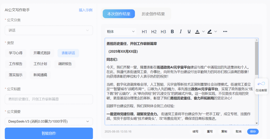 2.​​跨部门协同与场景覆盖​​:AI智能体可打破部门间“信息孤岛”,协同处理复杂业务。例如,企业开办场景中,AI智能体可自动联动市场监管、税务、社保等部门,将办理时间压缩50%以上。目前,道可云已为各级政府打造专属AI助手,涵盖AI公文写作、行政审批、应急管理等数十类场景化应用。