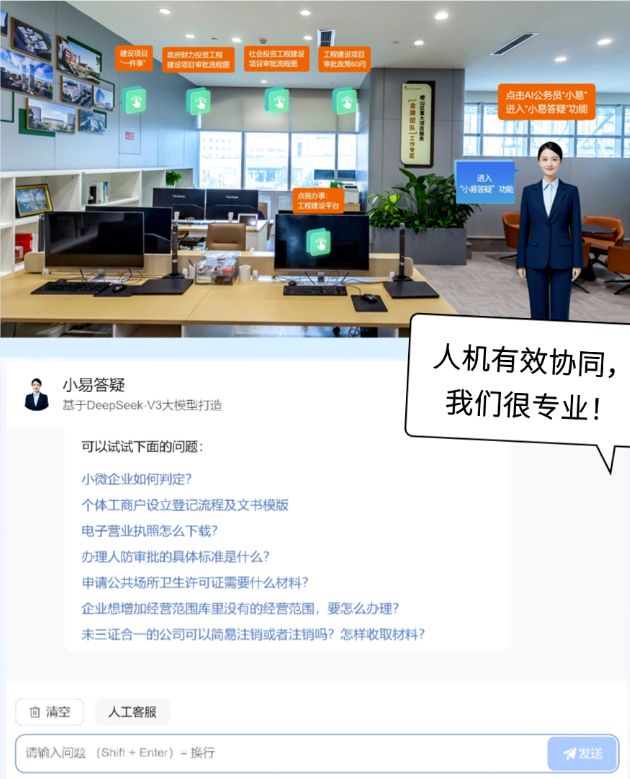 这一技术优势已在实际场景中得到充分验证 —— 在青岛市崂山区政务服务中心上线的全省首个AI公务员 “小易”,通过构建包含1200余个规范化问答对的政务服务知识库,实现业务问答响应率提升15%,建设项目业务申报的准确性和成功率大幅提升。自2024年12月上线以来,崂山政务 “虚拟大厅” 访问量已超过1.2 万次,AI公务员 “小易” 解答各类业务问题1700余次,切实将技术优势转化为服务效能。