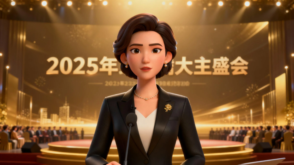 道可云的年会数字人方案引入高度拟真、智能交互的虚拟数字人,打破传统主持的单一模式。可根据企业需求进行2D或3D形象定制,发型、服饰等均能够精准匹配品牌调性。“数实融合” 的创新形式让数字人与真人主持人搭档协作,通过舞蹈、点头、摆手等动作引导,营造更立体、更富层次感的舞台氛围。