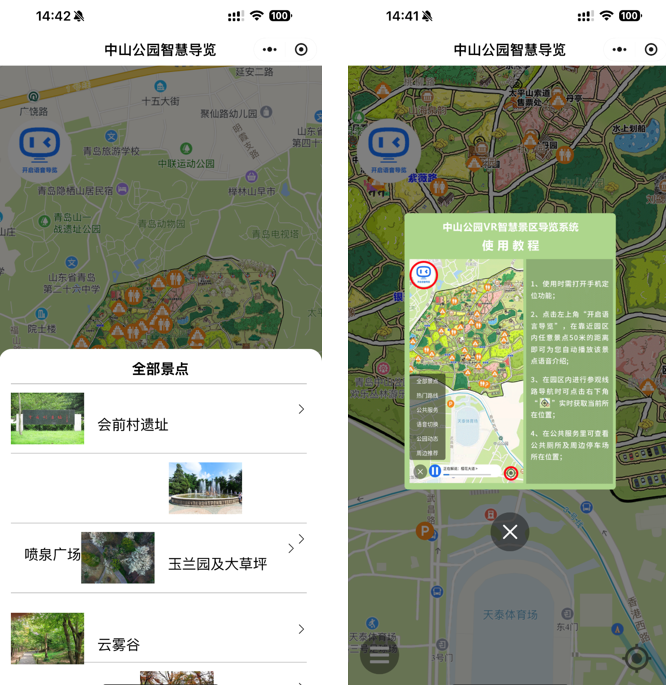 青岛中山公园:通过部署道可云智能导览系统,公园将优美的自然景观、厚重的历史人文与数字化体验无缝结合。数据显示,沉浸式体验内容分享率提升2倍,游客停留时长增加40%。