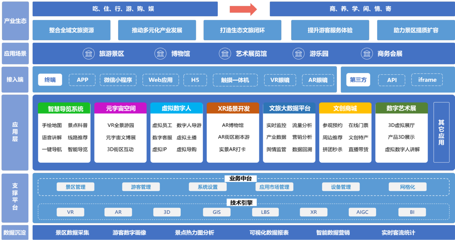 作为国家工信部推荐单位、领先的创新元宇宙和人工智能厂商,为助力各景区提质扩容,加快数字公园建设步伐,道可云打造了领先的文旅元宇宙平台,可为文旅的各级文旅主管部门和旅游景区、博物馆、艺术展览馆等单位提供景区导览、VR全景游园、AR场景开发和数字人导游、文旅大数据平台、数字化场景设计的整体解决方案,为游客打造“食、宿、行、购、游、乐、娱”的一站式旅游服务综合体。